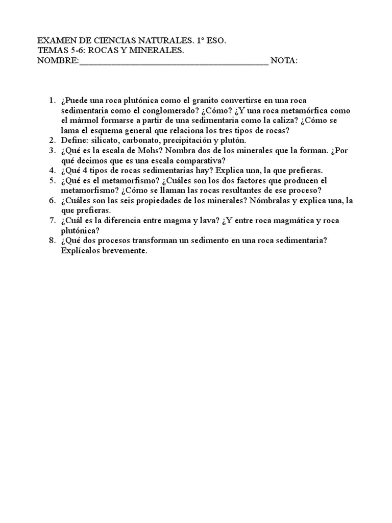 Biologia Y Geologia 1 Eso Examenes