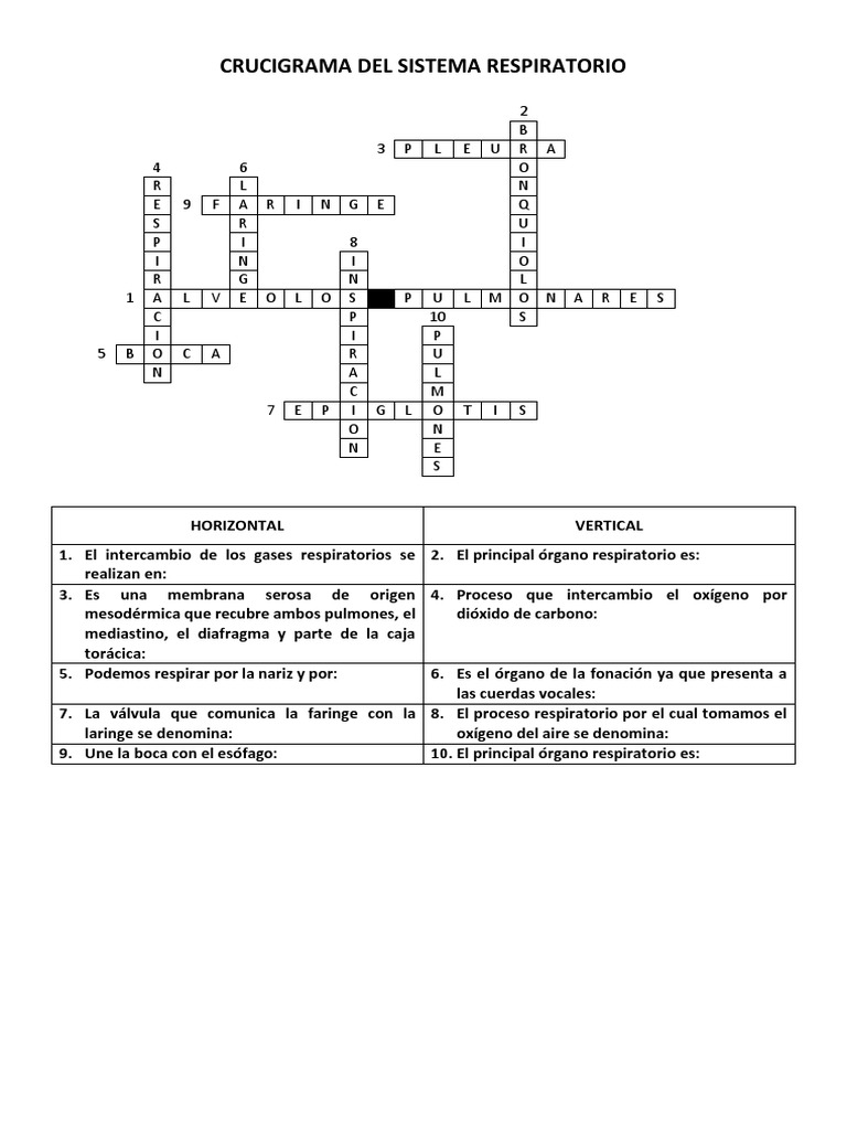 Crucigrama Del Sistema Respiratorio Pdf Sistema Respiratorio Pulmon