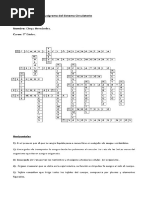 Crucigrama Sistema Circulatorio Ciencias Naturales Octavo Basico Pdf Corazon Sangre