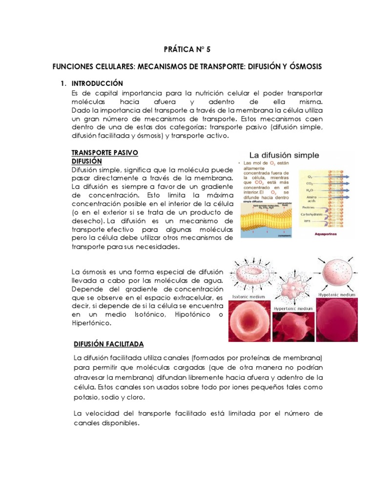 Pratica 5 Funciones Celulares Mecanismos De Transporte Difusion Y Osmosis Pdf Membrana Celular Ciencias De La Vida