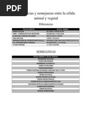 Semejanza Y Diferencia Entre Celula Animal Y Vegetal Conocelas Aqui Pdf Pdf Biologia Celular Plantas