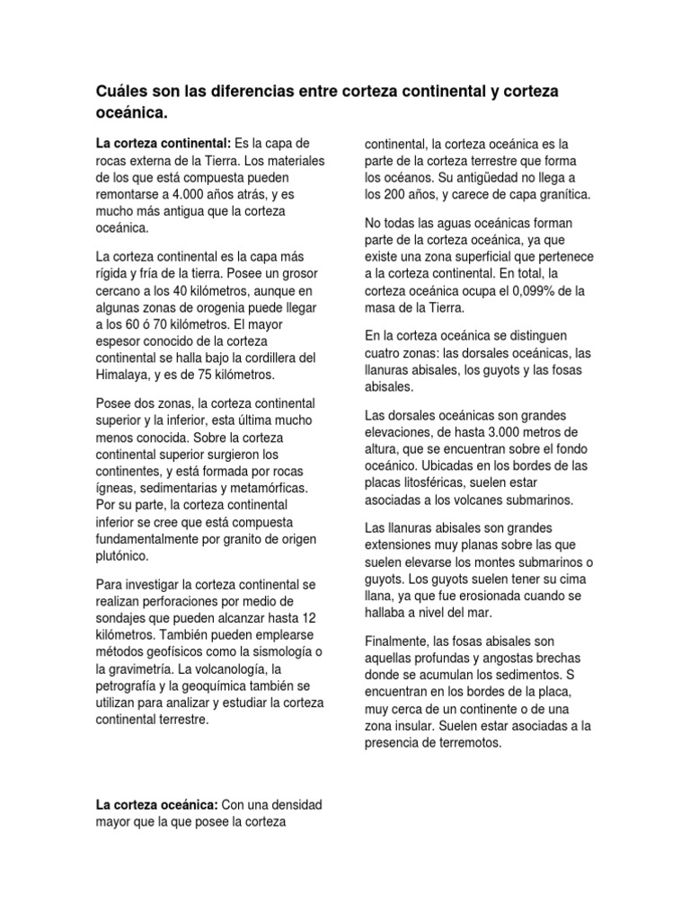 Cuales Son Las Diferencias Entre Corteza Continental Y Corteza Oceanica Pdf Placas Tectonicas Continente