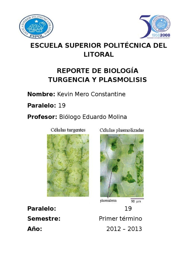 Informe De Turgencia Y Plasmolisis Pdf Membrana Celular Biologia Celular