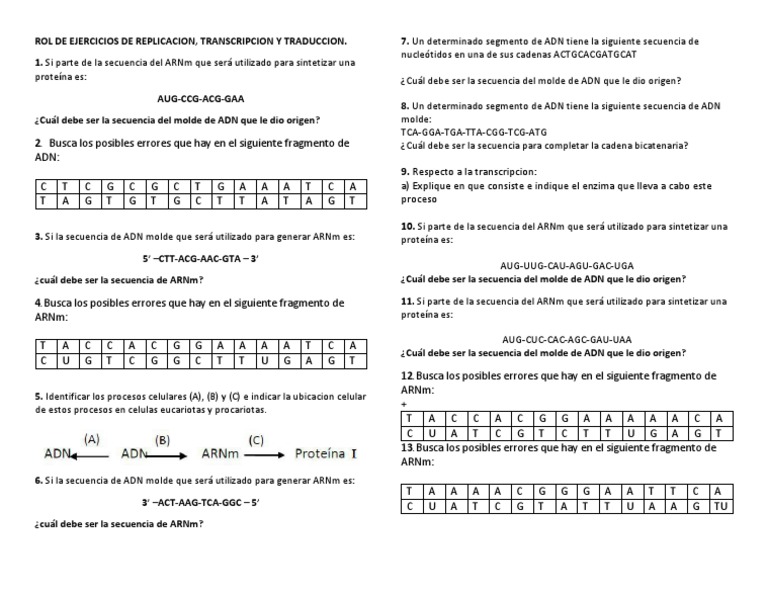 Rol De Ejercicios De Replicacion 4 B Pdf Messenger Rna Adn