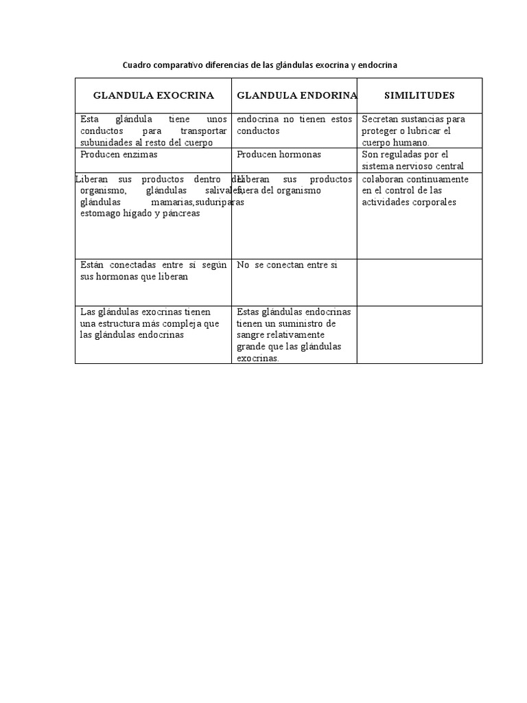 Cuadro Comparativo Diferencias De Las Glandulas Exocrina Y Endocrina Pdf