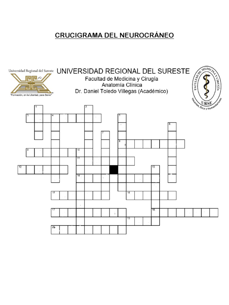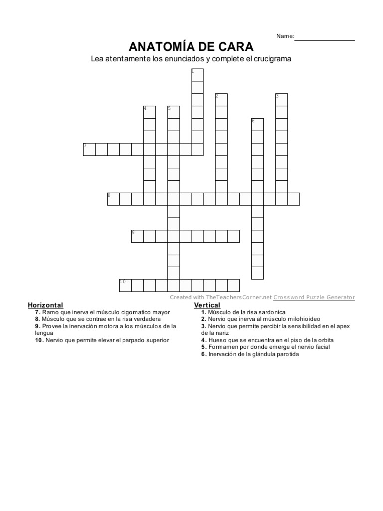 Crucigrama Pdf Cabeza Y Cuello Humanos Sistema Nervioso