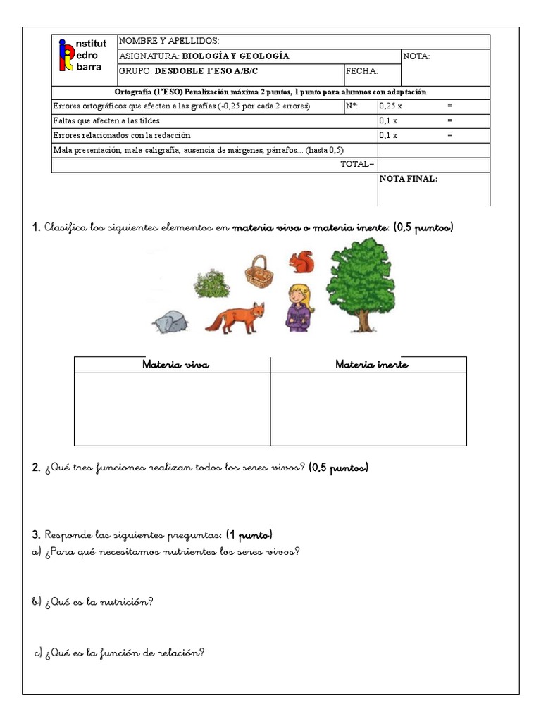 Preguntas De Biologia 1 Eso