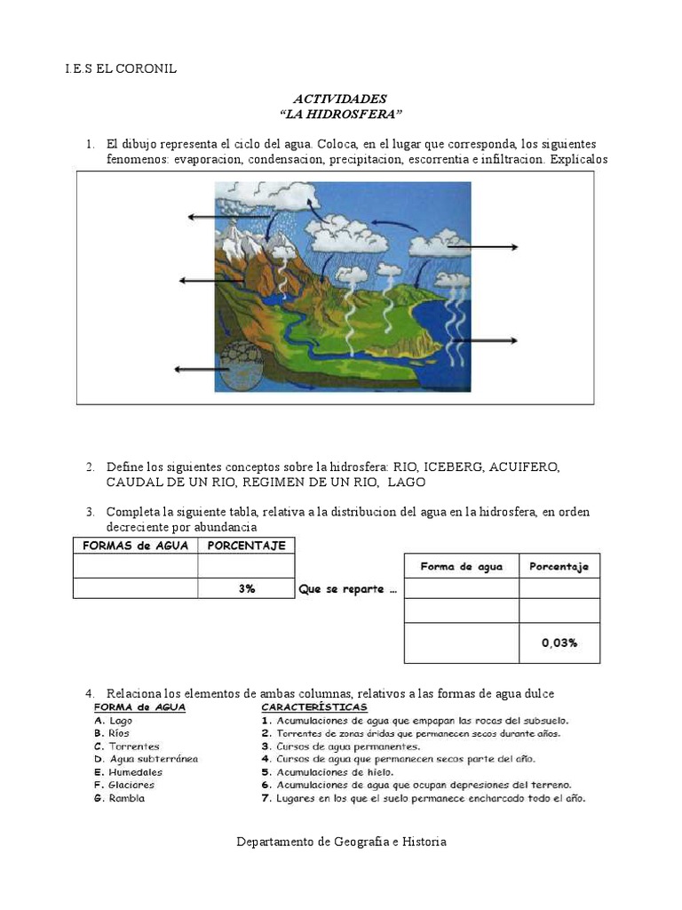 Ejercicios De La Hidrosfera Online O Para Imprimir