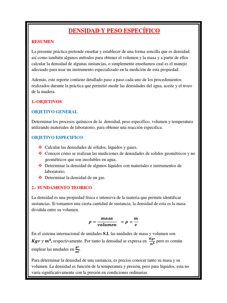 Doc Densidad Y Peso Especifico Frederick Lopez Academia Edu