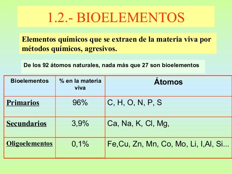 Bioelementos Oligoelementos Bioelementos Secundarios