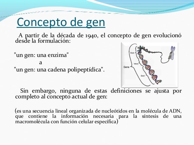 Concepto actual de gen. Los genes se transmiten de los padres a la descendencia y contienen la información necesaria para precisar sus. Éste es un concepto que proporciona una. Pero se basaban en el concepto de que el gen.