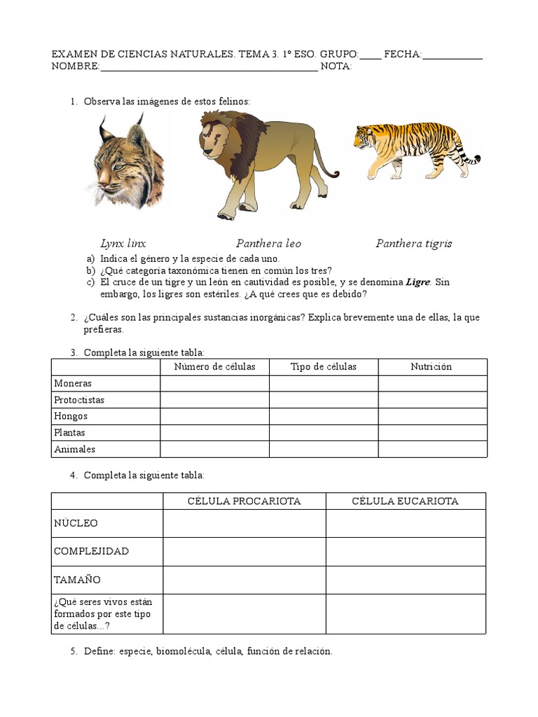 Examen Del Tema1 De Biologia Y Geologia De 1º Eso Los Seres Vivos